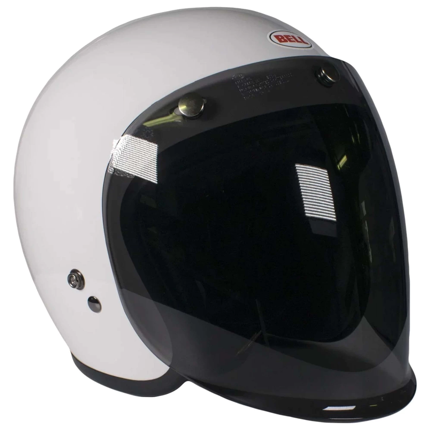 A 3 snap fit full length shield visor in clear to fit the Bell Custom 500 and other helmets with 3 snaps.