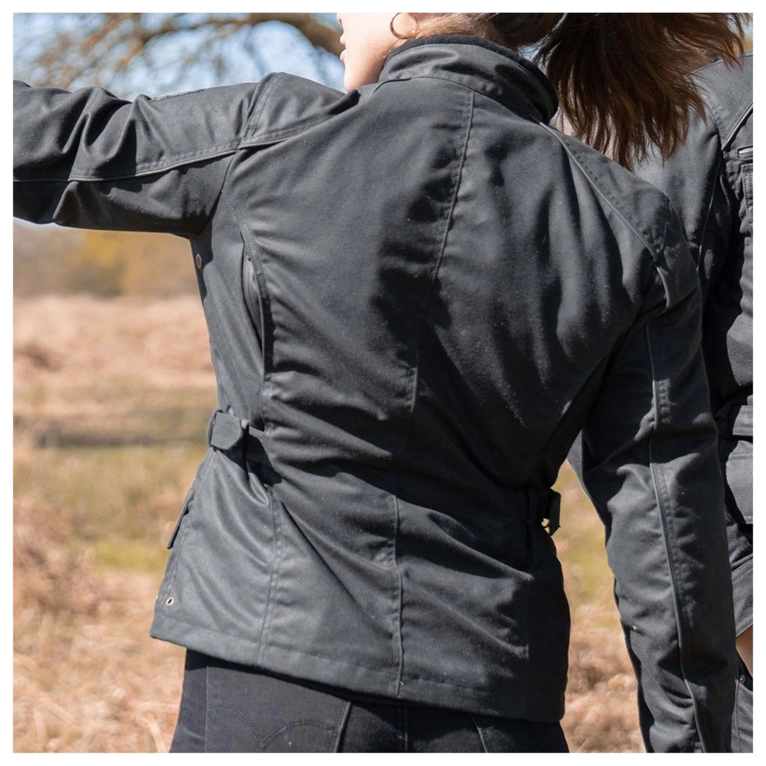 Belstaff is known for its wax cotton garments, a fabric they have been using to make motorcycle clothing for the better part of a century now. This year, however, marks a special occasion: Belstaff, together with cotton mill British Millerain, have re-invented the wax cotton and upgraded it to TekWax. TekWax is a new innovation that uses high grade synthetic fibres intertwined with Belstaff’s high quality cotton to obtain an abrasion resistant fabric that achieves an A rating in the new CE Abrasion & Tear tests. It does this without adding bulk and sacrificing its light weight or the classic Belstaff style. Using the synthetic fibres in the weaving process means the fabric does not rely on thickness to provide exceptional abrasion resistance. D3O Level 1 CE certified armour is included in the elbows and shoulders offer excellent impact absorption and there is of course a pocket for you to add an optional back protector.