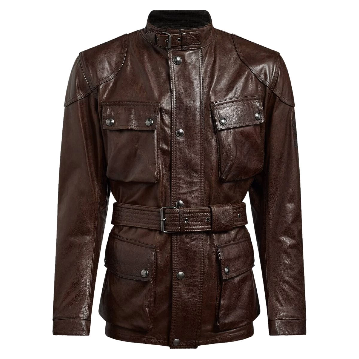 The Trialmaster Pro beautifully executed in a waxed bovine leather. Based on the design of the best selling wax cotton Belstaff Tourist Trophy Jacket, this leather version is absolutely exquisite and will last you a lifetime. Belstaff themselves call this the “Black Brown” version, but that is vastly underselling the rich mahogany brown colour of the leather on this jacket.