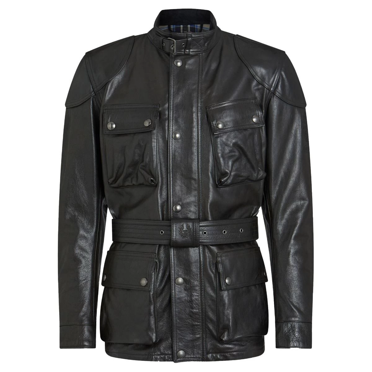 The Trialmaster Pro beautifully executed in a waxed bovine leather. Based on the design of the best selling wax cotton Belstaff Tourist Trophy Jacket, this leather version is absolutely exquisite and will last you a lifetime. The antique black colour of the leather on this jacket has a beautifully weathered finish.
