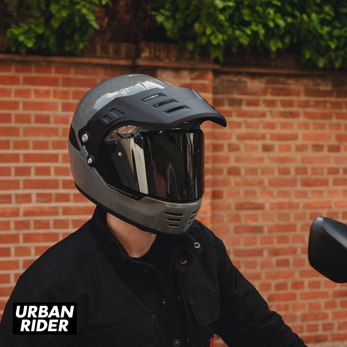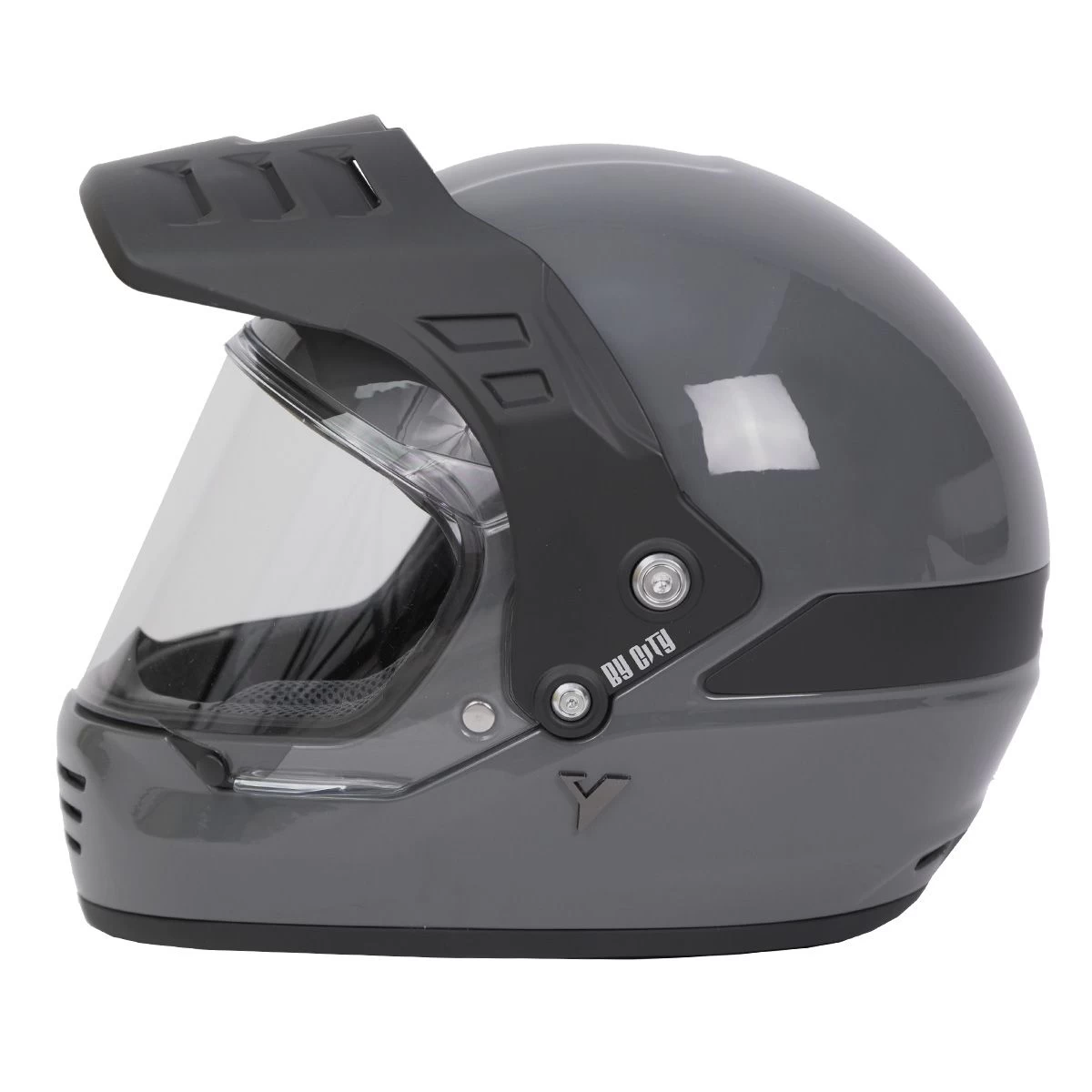 The Bycity Rider 06 helmet is a versatile helmet to suit all types of riders and bikes. The sleek fibreglass shell has a subtle 80s design yet offers the latest in safety and comfort. With the included peak installed, the Rider takes the guise of a full-fledged adventure helmet. Remove the peak and you get a much more aggressive, road-focused look. The choice is yours.