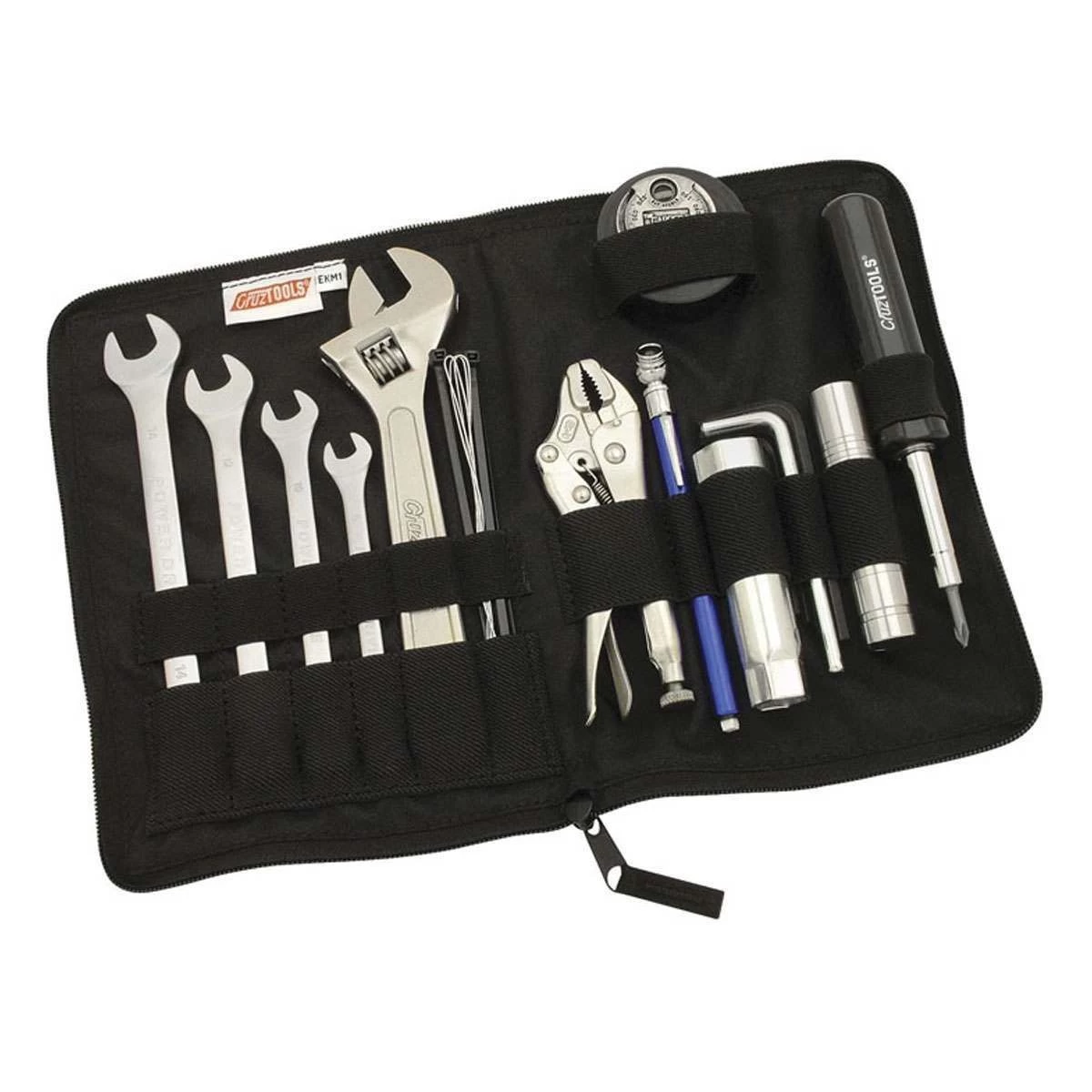 Motorcycles nowadays rarely ever have a toolkit included when bought, and if they do the quality and range of tools is often disappointing. Not ideal when you’re stuck at the side of the road and need a quick in easy fix but lack the proper tools. CruzTools has got you covered. Their EconoKIT M1 metric toolkit is a major upgrade over OEM kits in both quality and content and contains pretty much everything you need for the most common jobs. This kit contains the crucial tools that’ll get you going again. Kept in a sturdy pouch with elastic straps holding the tools in place, this toolkit is designed to last for the long haul.