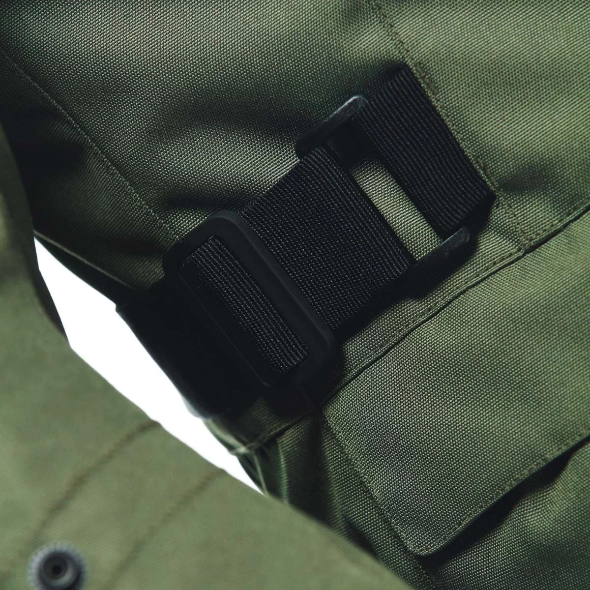 - Elastic mesh cargo pocket and inserts in resistant rubberized fabric