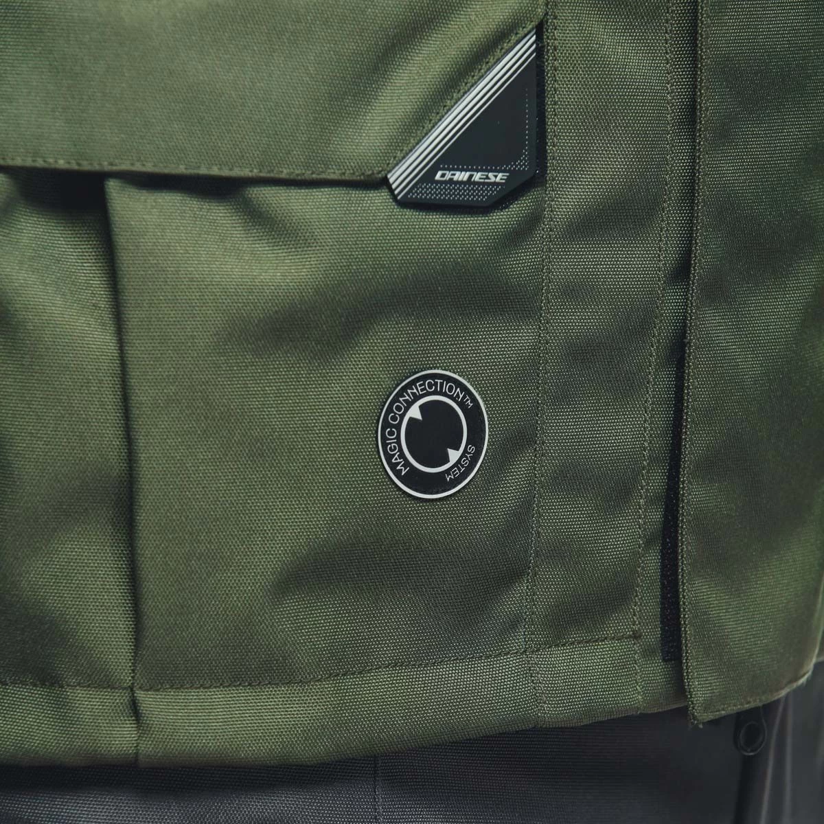 It also has the integrated Dainese Magic Connection™ technology, with a magnetic system that allows compatible Dainese gloves to be securely attached to the jacket, so they’re always within reach and won’t get lost when refuelling or during short stops.