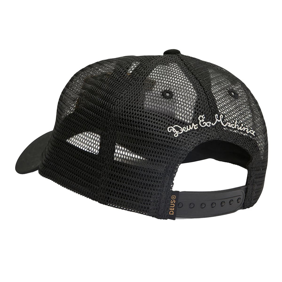 The Miller Trucker by Deus introduces a unique twist to the classic Trucker style with its full mesh construction. The peak and badge contribute a striking contrast to the overall understated design. While retaining some of the trucker classics such as the plastic snap closure and Cotton Twill visor, the all mesh finish of the Miller Trucker is sure to capture attention and offer a distinctive look.
