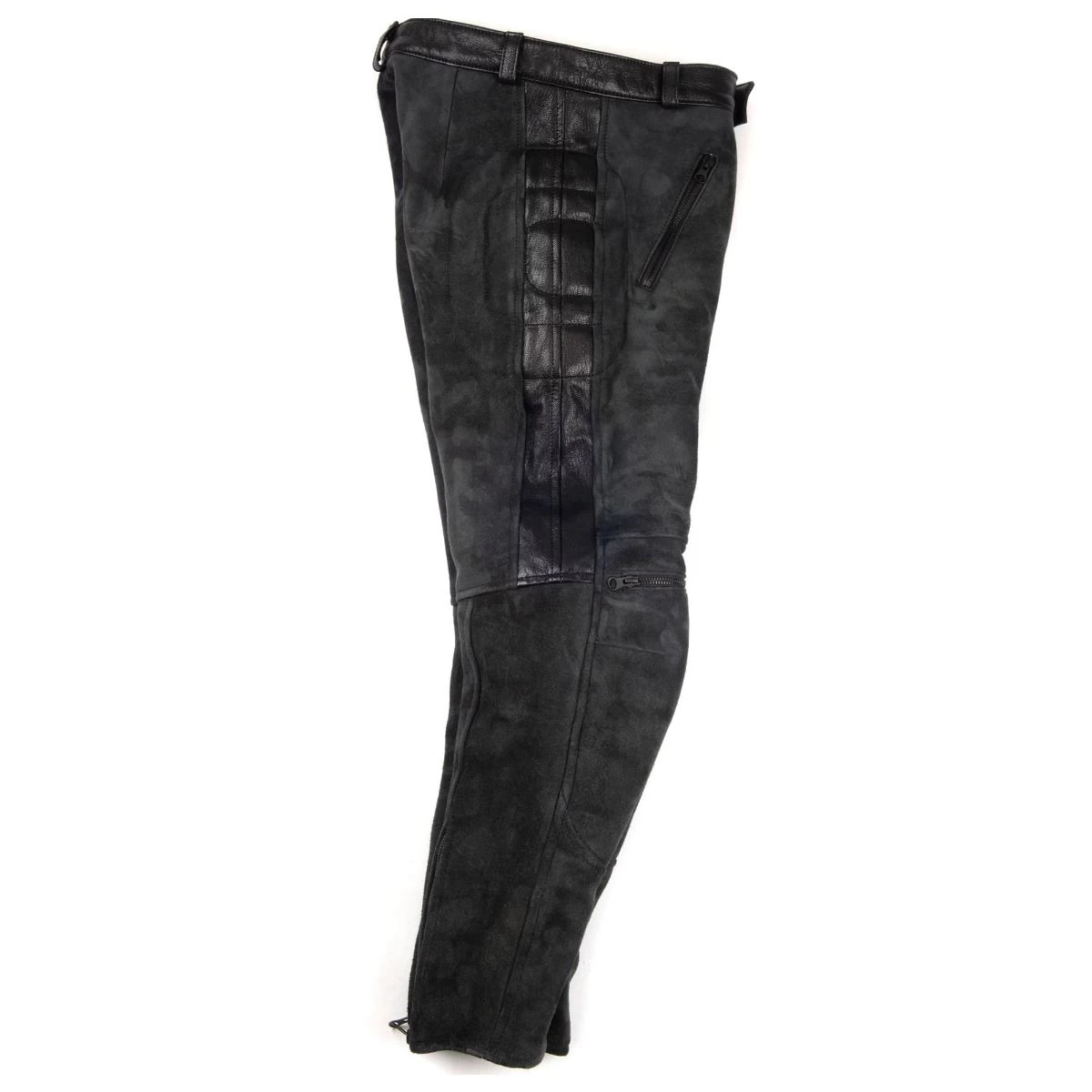 El Solitario’s Rascal leather motorcycle trousers are something special. They are hand-crafted by Spanish craftsmen in a tiny family atelier in the Galician forest. Watch the impressive video below for an idea of how intricate the manufacturing process is. The Rascal is constructed out of a 1.4 mm thick top grain Nappa leather, carefully tanned in Italy. This extremely sturdy and durable leather is known for its supple nature. The reverse side of the leather is used for a suede-like, luxurious look and feel while the hips are accentuated by the smooth leather outer and the quilted detailing with extra padding.