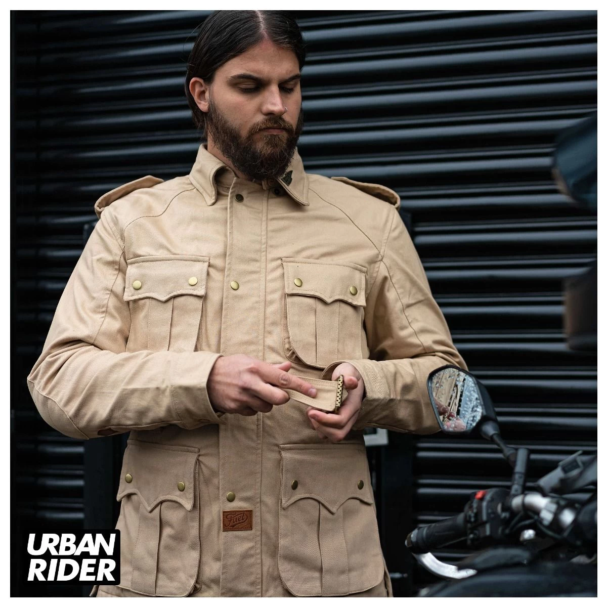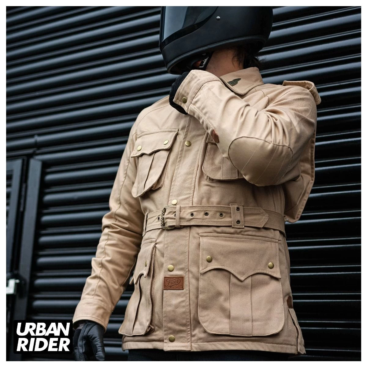 Designed with the explorers of years past in mind, the Safari jacket is true to its name. It’s made to accompany on your wildest adventures, from a dreary commute down the M4, to dirt tracks in the wilderness, and desert adventures. It comes fully equipped with a set of removable Smoothways Level 2 armour – that’s elbows, shoulders, and back – that’s soft and malleable so fits with ease whilst providing high levels of impact protection. With plenty of map-sized pockets on the front, you’ll find a little treat to aid you in your quests in the rear pouch – there’s an included water-resistant rain jacket to keep you dry and comfortable for when the weather inevitably turns.