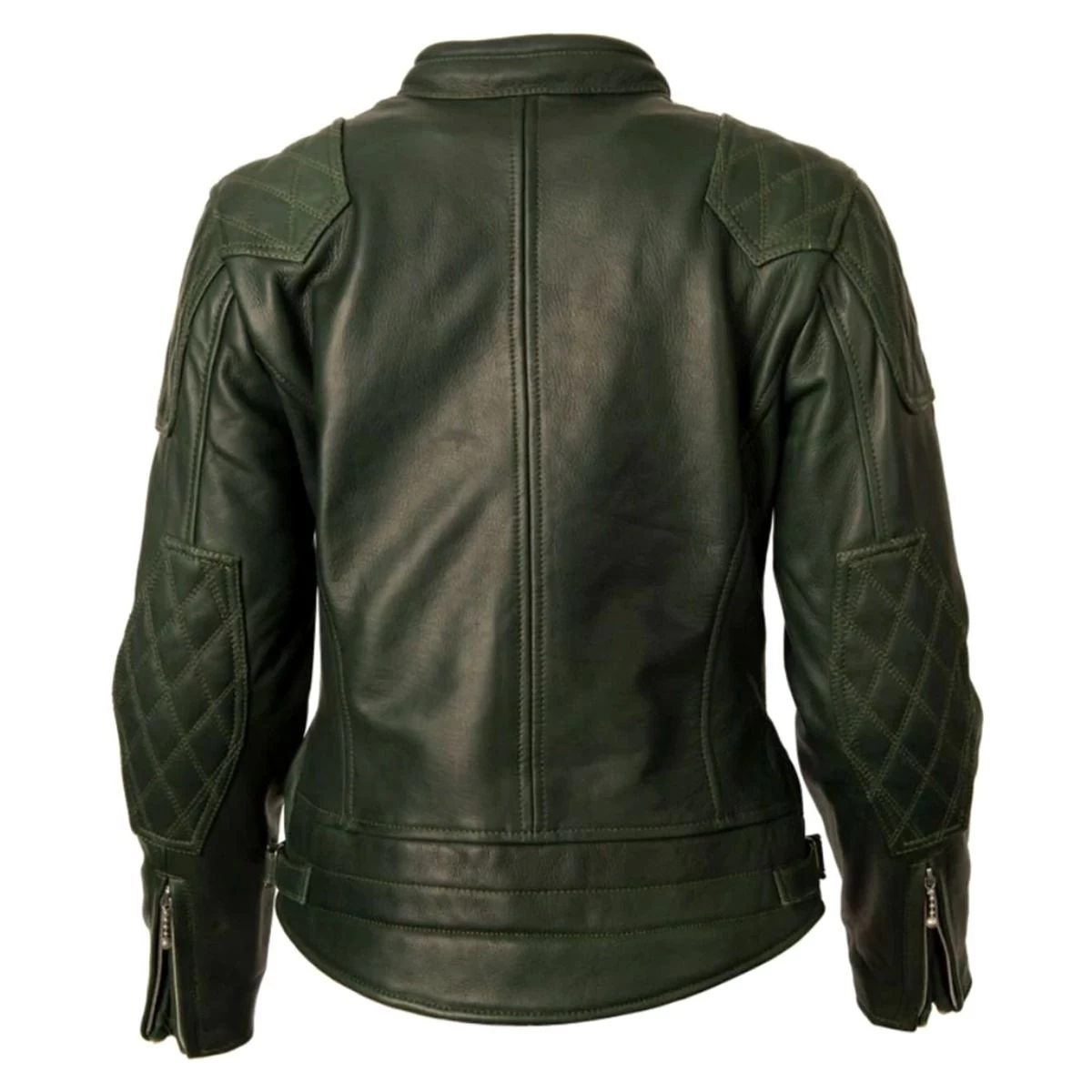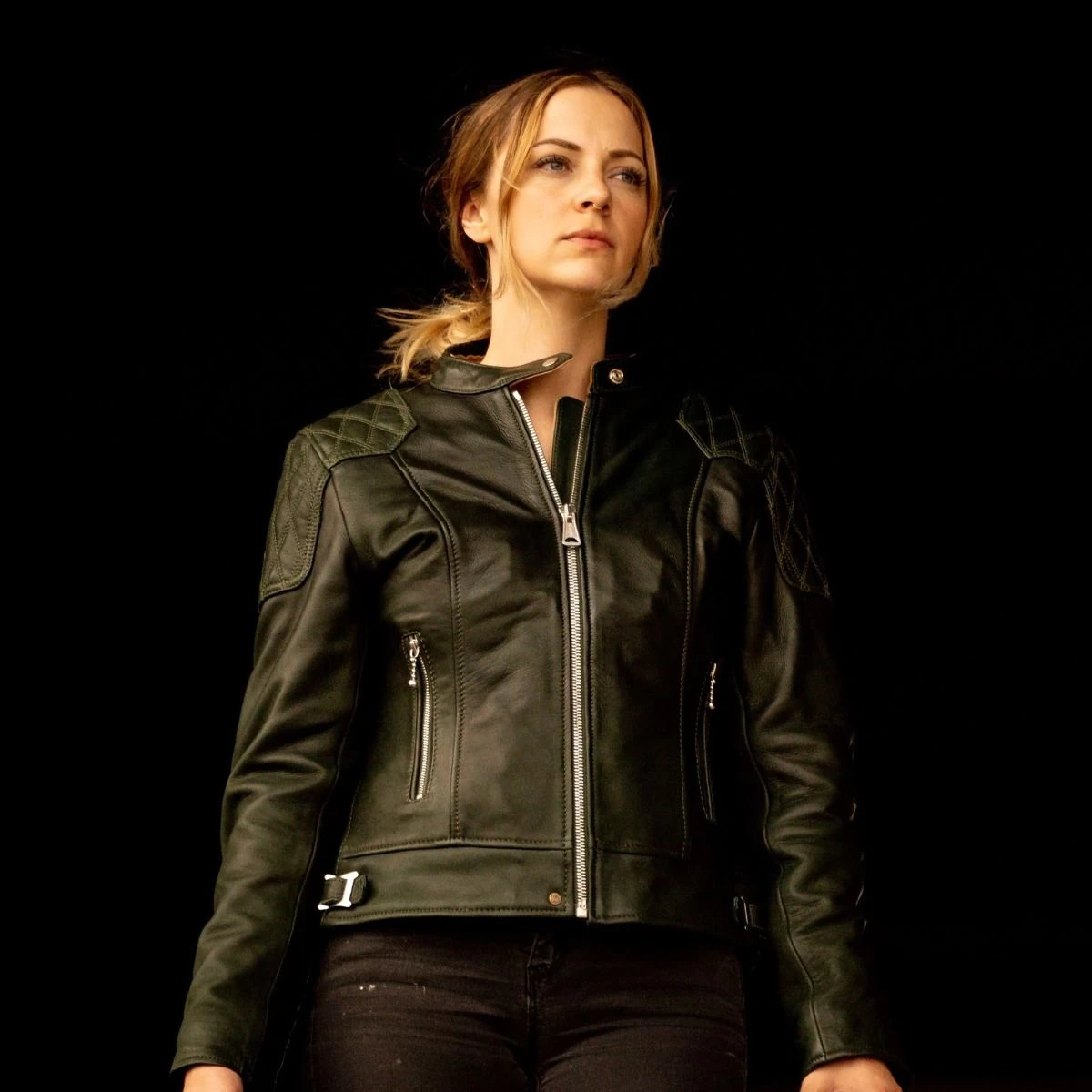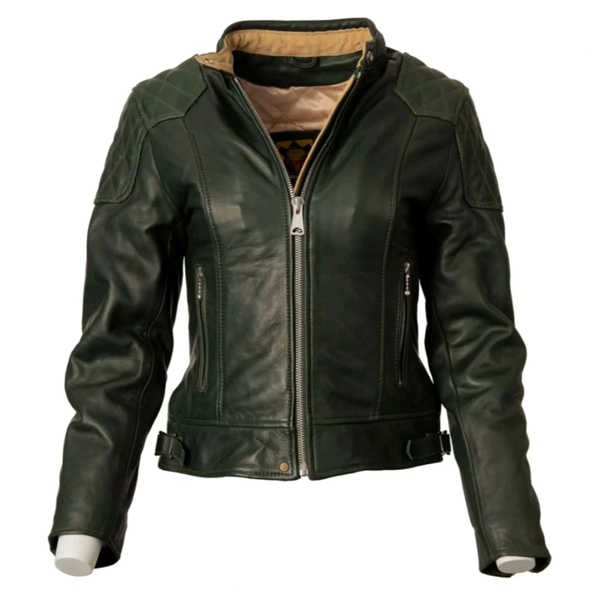 - Classic cafe-racer style armoured leather ladies riding jacket