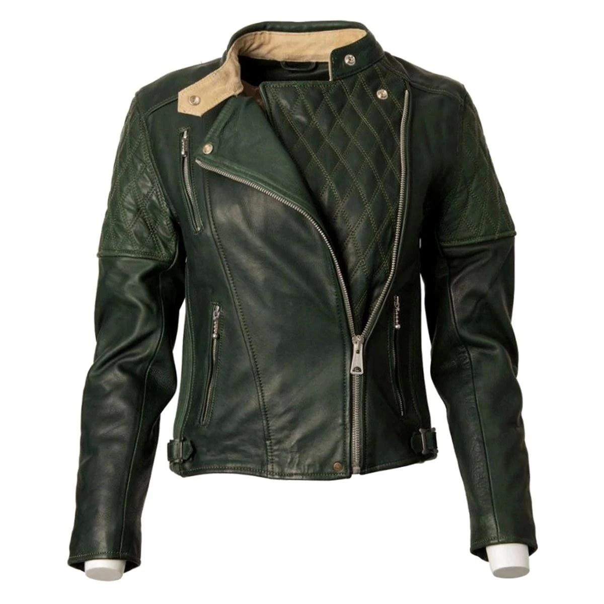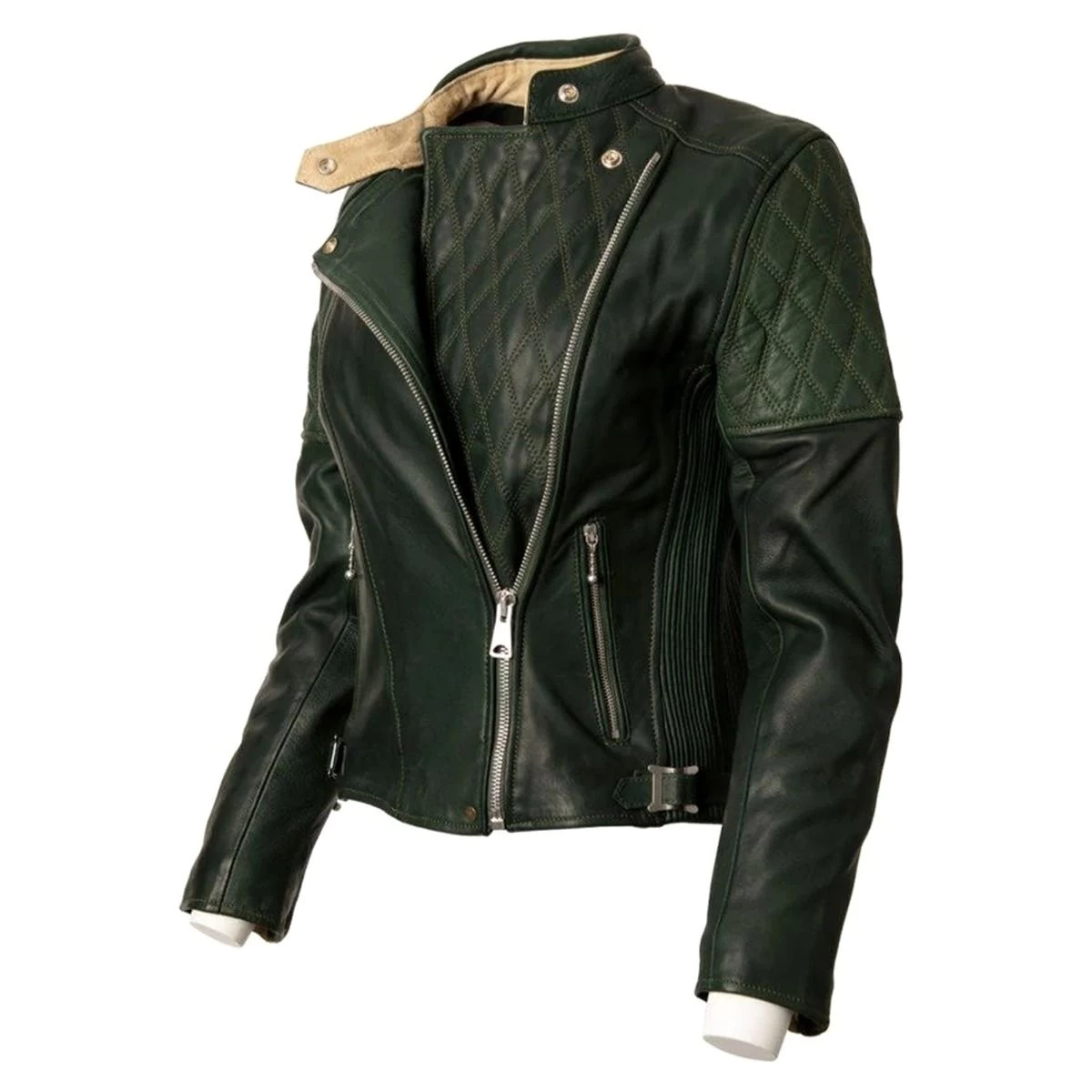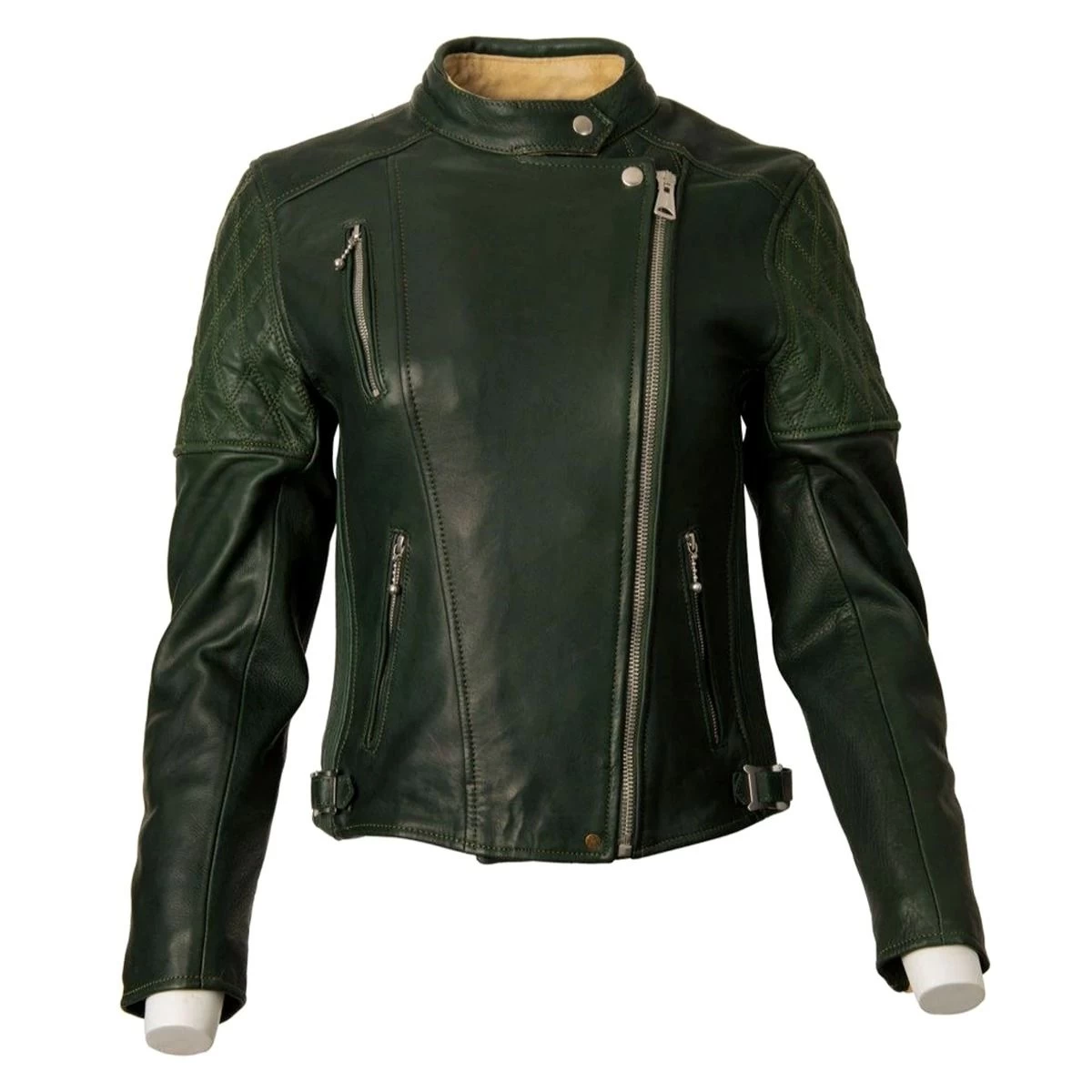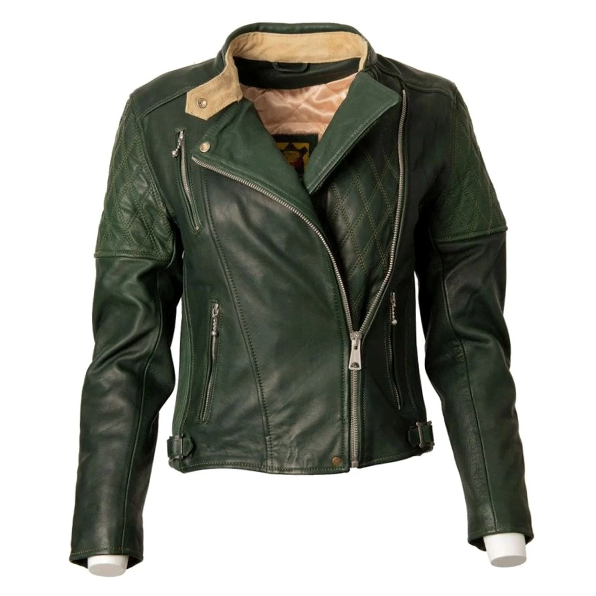 - Classic asymmetric rocker style armoured leather ladies riding jacket