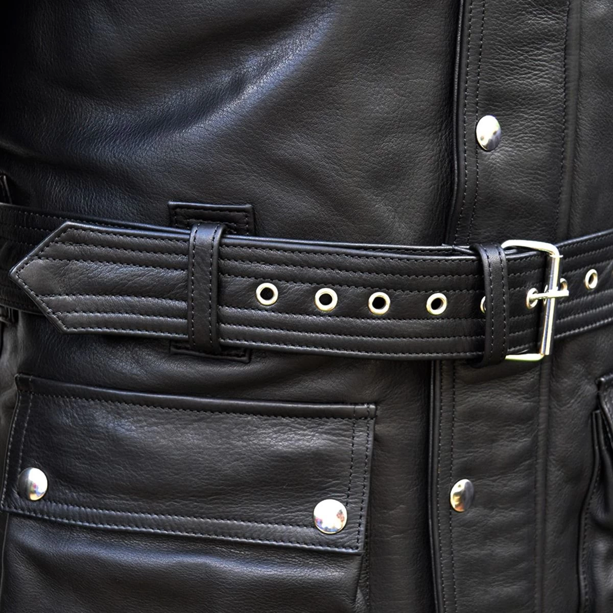Featuring full hide panels – Goldtop refuse to use split hides! – and a traditional two-way front zipper for rider comfort, the Patrol jacket takes the retro and makes it modern. As we have come to expect from Goldtop, exquisite finishing round off a stunning jacket, with the trademark Goldtop gold quilted lining, and luxurious black suede trim at the collar and cuffs. The iconic full-length leather belt allows for perfect rider fitment every time.