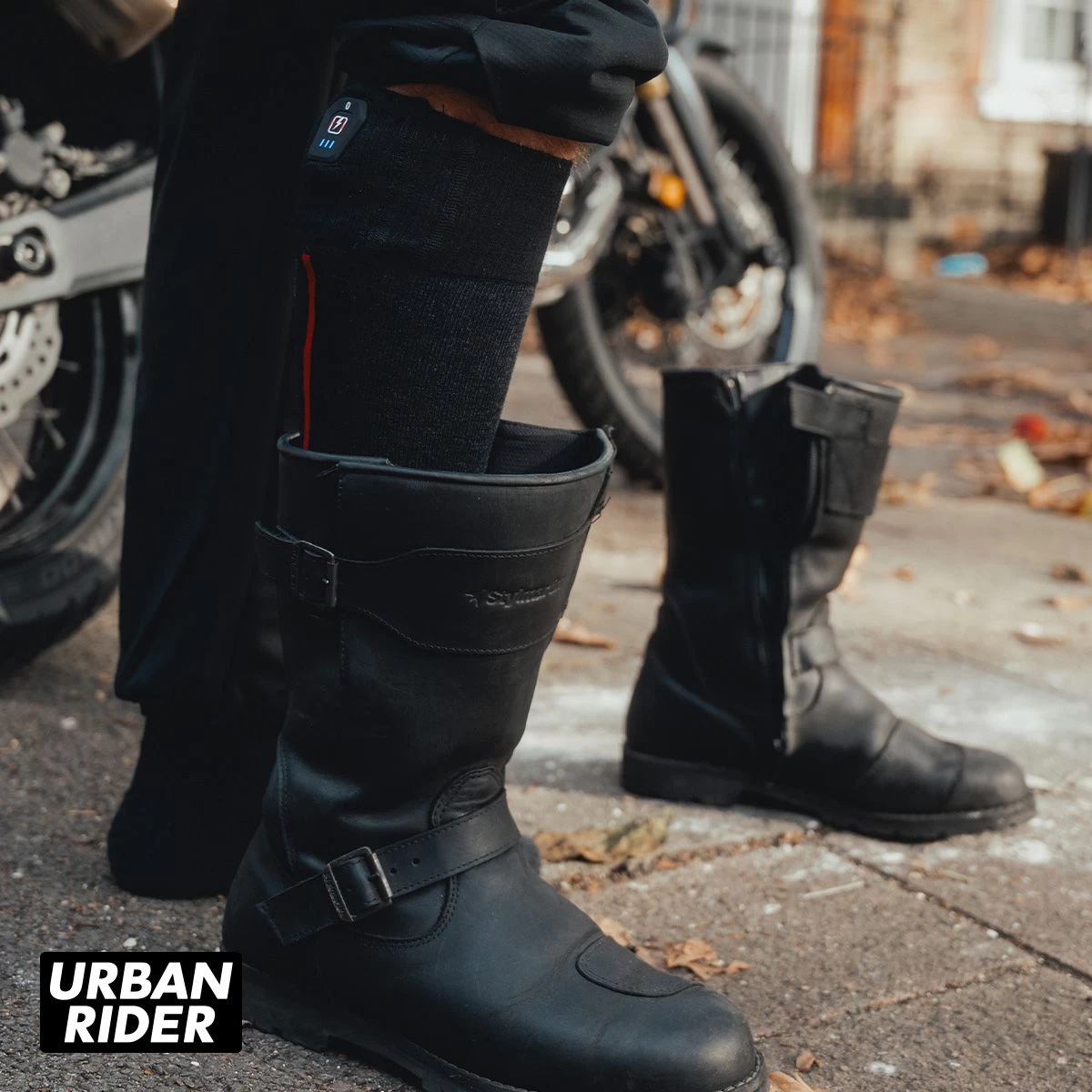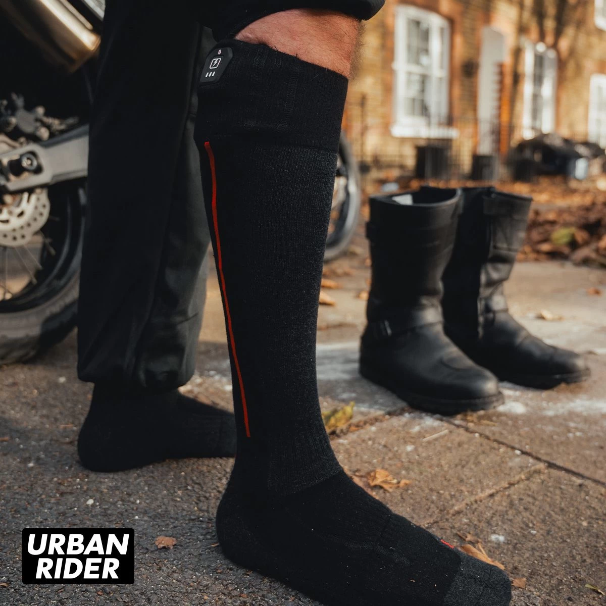 - Dual power (7.4V or 12V) battery or bike powered heated socks