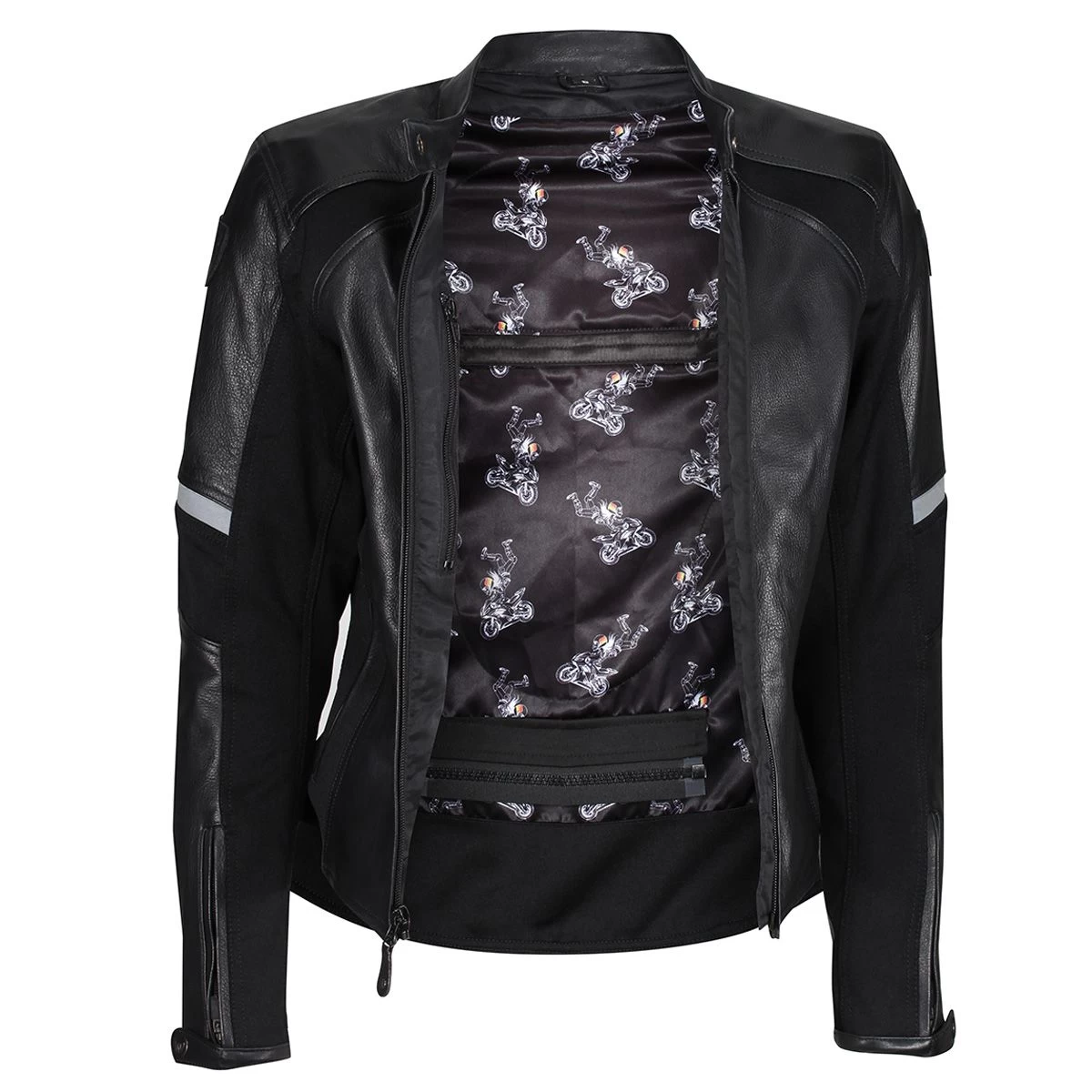 The printed inner lining adds a touch of style to the jacket, while the reflective strips on the arm and back enhance visibility in low-light conditions, making it a safe choice for nighttime riding.