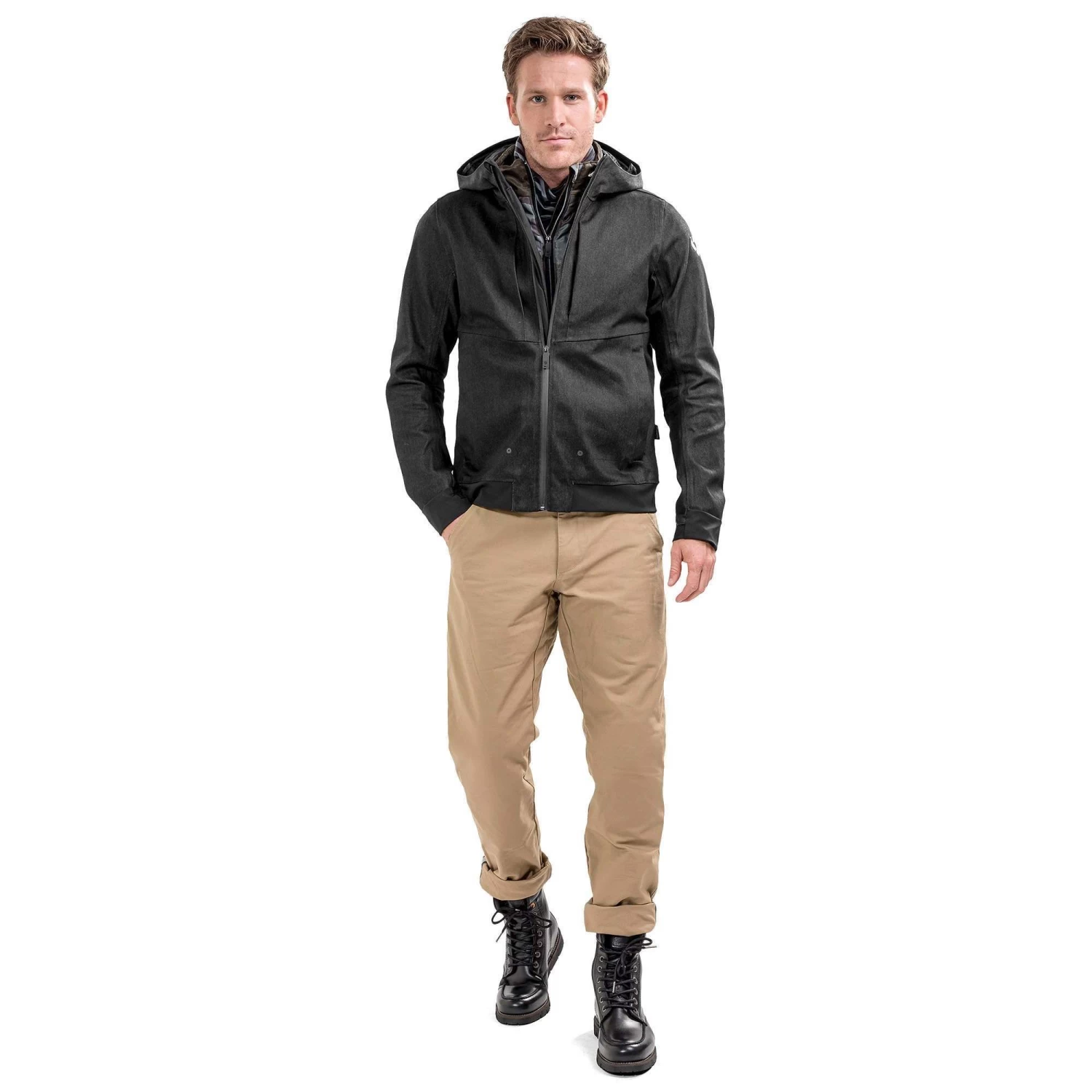 Rev’It! took its bestselling Stealth summer jacket / hoodie and created the Stealth 2, a versatile all-year-round jacket ideally suited for the style-conscious urban rider. Nobody will know you are wearing a motorcycle jacket (hence the name) but rest assured, the Stealth 2 is a capable and protective piece of kit that will do the job when on the bike! The outer shell is constructed from sturdy 3L Cordura Denim, but the bulk of the protection comes from the Rev’It PWR|Shield abrasion-resistant panels that are incorporated underneath the outer layer. Rev’It even went as far as including their PWR|Shell fibres in the stretchy cuff and hem. The jacket comes equipped with the gloriously flexible Seesmart CE Level 1 armour in the shoulders and elbows. You’ll barely notice it’s there, until you need it. Of course there is a pocket for an optional Seesoft back protector too.Â