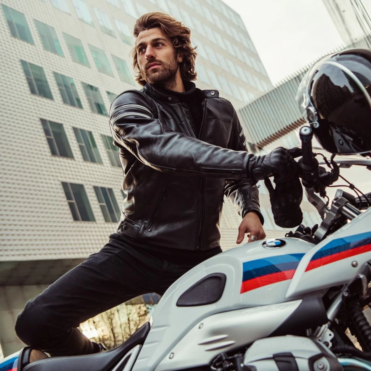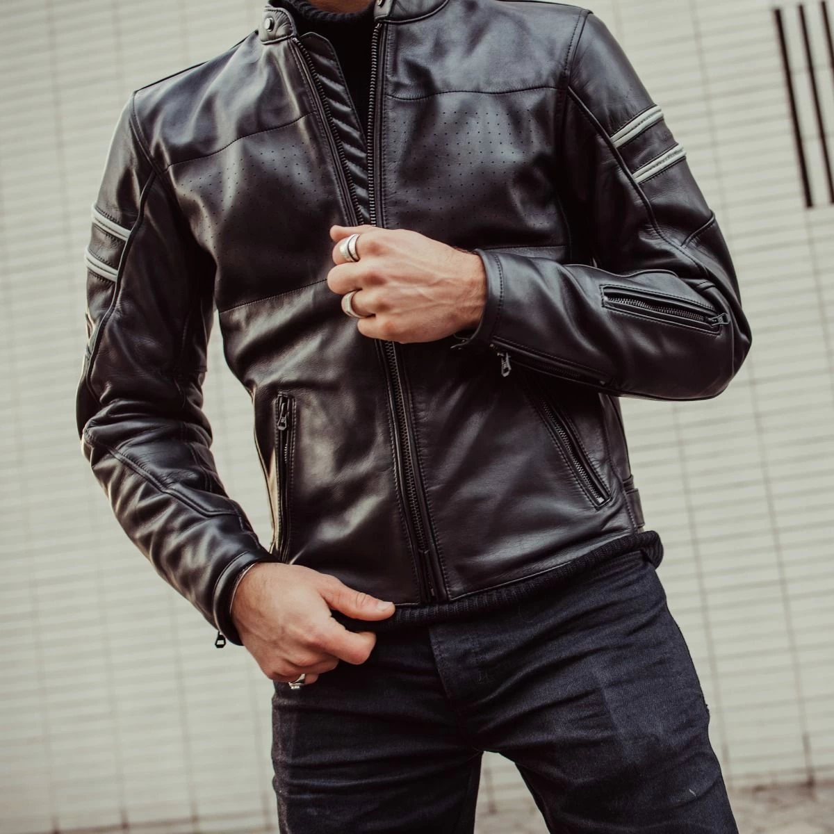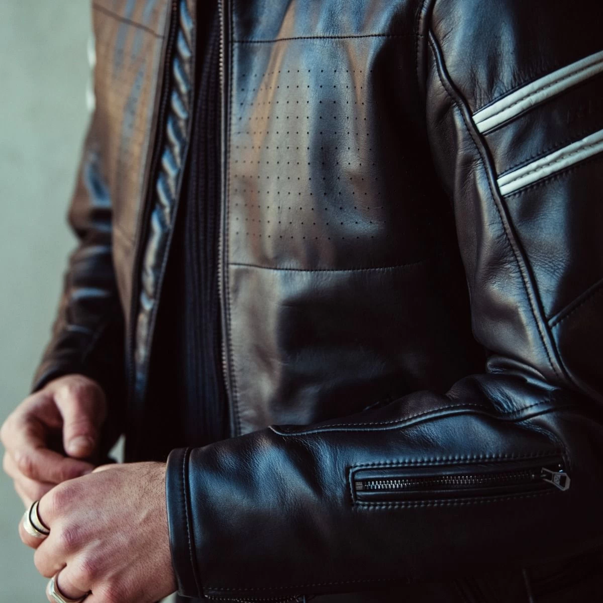 The Stride motorcycle jacket is a stylish and lightweight leather jacket that pays homage to classic motorcycle style, while also incorporating modern elements. Top-quality materials have been extensively tested to ensure a durable and long-lasting product. The Stride is available in two versions: a soft brown leather and a black leather that will become softer with wear. The jacket is designed with urban riders in mind, featuring perforation on the chest for increased airflow and a zippered pocket on the left lower sleeve for convenience. It also has two front zippered pockets and minimal color contrast details on the upper arms for a clean look. Whether you’re cruising through the city or meeting up with friends, the Stride motorcycle jacket is the perfect choice.