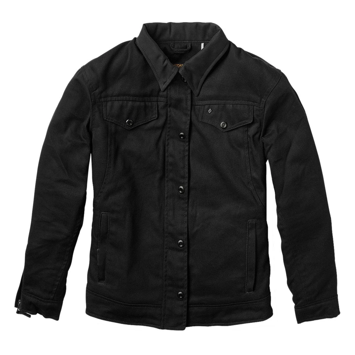 - Heavy duty denim trucker style ladies riding jacket