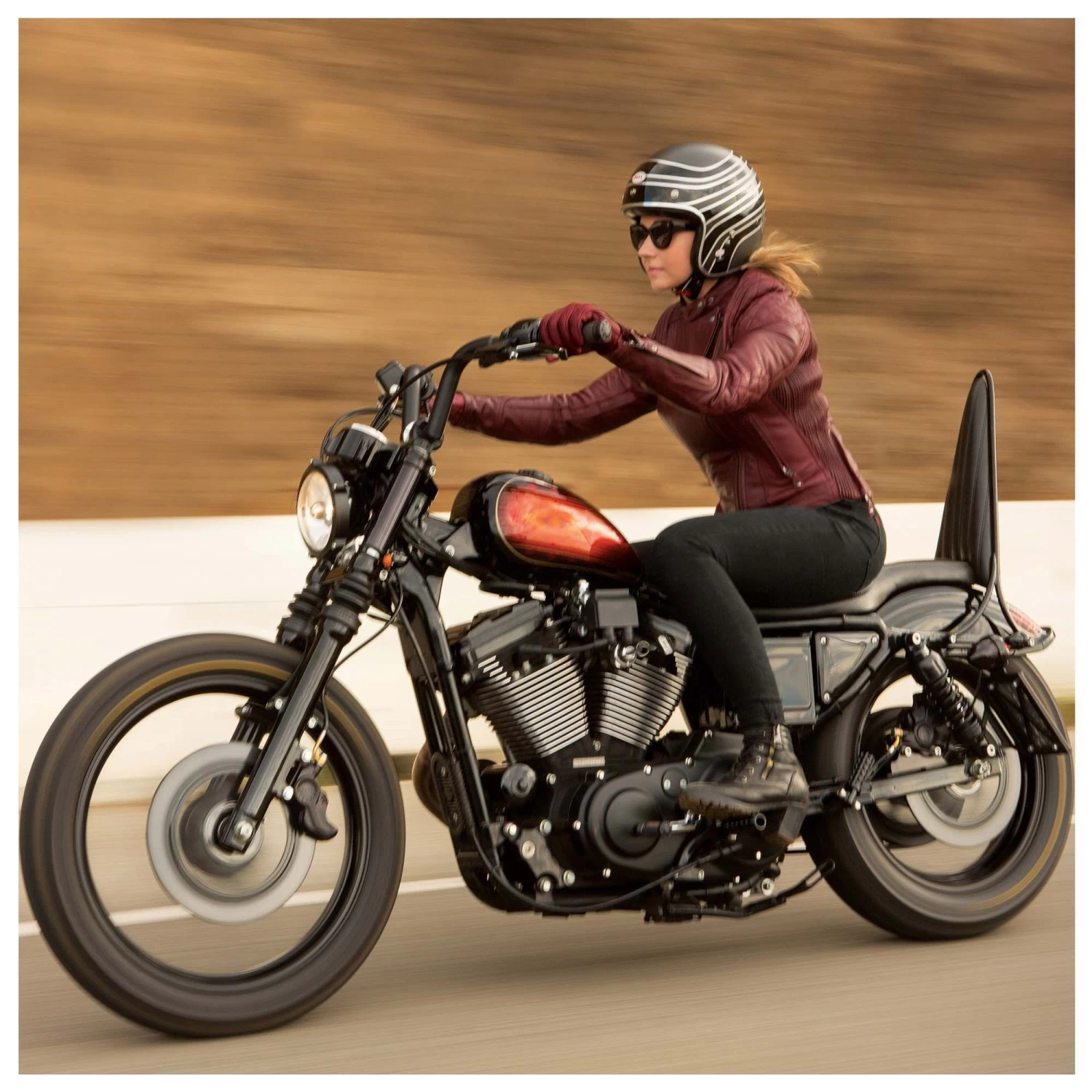 Here’s the general consensus at the Urban Rider headquarters: the Roland Sands Design Clash jacket might just be the coolest looking leather motorcycle jacket on the market. Here’s another thing we all agree upon: there’s not nearly enough nice motorcycle clothing out there for women. RSD once again proves to be a company after our own heart by introducing the Riot jacket. A gorgeous, rocker-inspired ladies leather jacket. Walking the fine line between edginess and feminine elegance with nearly unrivalled finesse, the Riot is a jacket you’ll covet for years to come. The supple black leather will age nicely over time. An offset zipper and quilted detailing gives the jacket a vintage feel while the dropped back will keep your lower back covered when leaning forward against the wind on your favourite bike.