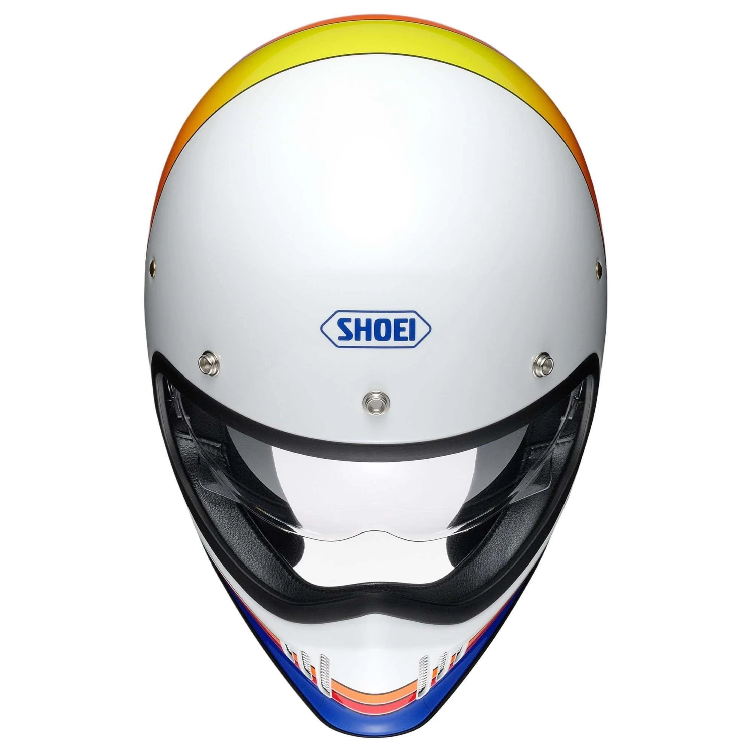 Shoei expands its helmet range and introduces the EX-Zero: an undeniably classic looking helmet packed to the brim with modern features. It is based on Shoei’s EX-series from the 1980s. The EX-Zero looks like a no-frills, hop on the bike and twist the throttle kind of helmet, but there’s more than meets the eye. It houses a cleverly hidden dropdown CJ-3 visor which can easily be swapped out for a tinted alternative if you choose to. The shell is constructed using Shoei’s Advanced Integrated Matrix technology, creating a lighter, more elastic shell that is still highly impact-absorbent and penetration-resistant. It comes in 3 shell sizes ensuring a perfect fit while keeping the profile nice and compact. The liner and pads are easily removable and washable. The viewport is nice and wide and houses the vast majority of goggles on the market (including the 100% Barstow goggles). Add an optional peak if you want to go for a more off-road look, or ride as is. Whatever your preference, Shoei created an awesome looking helmet with a spec-sheet to match!