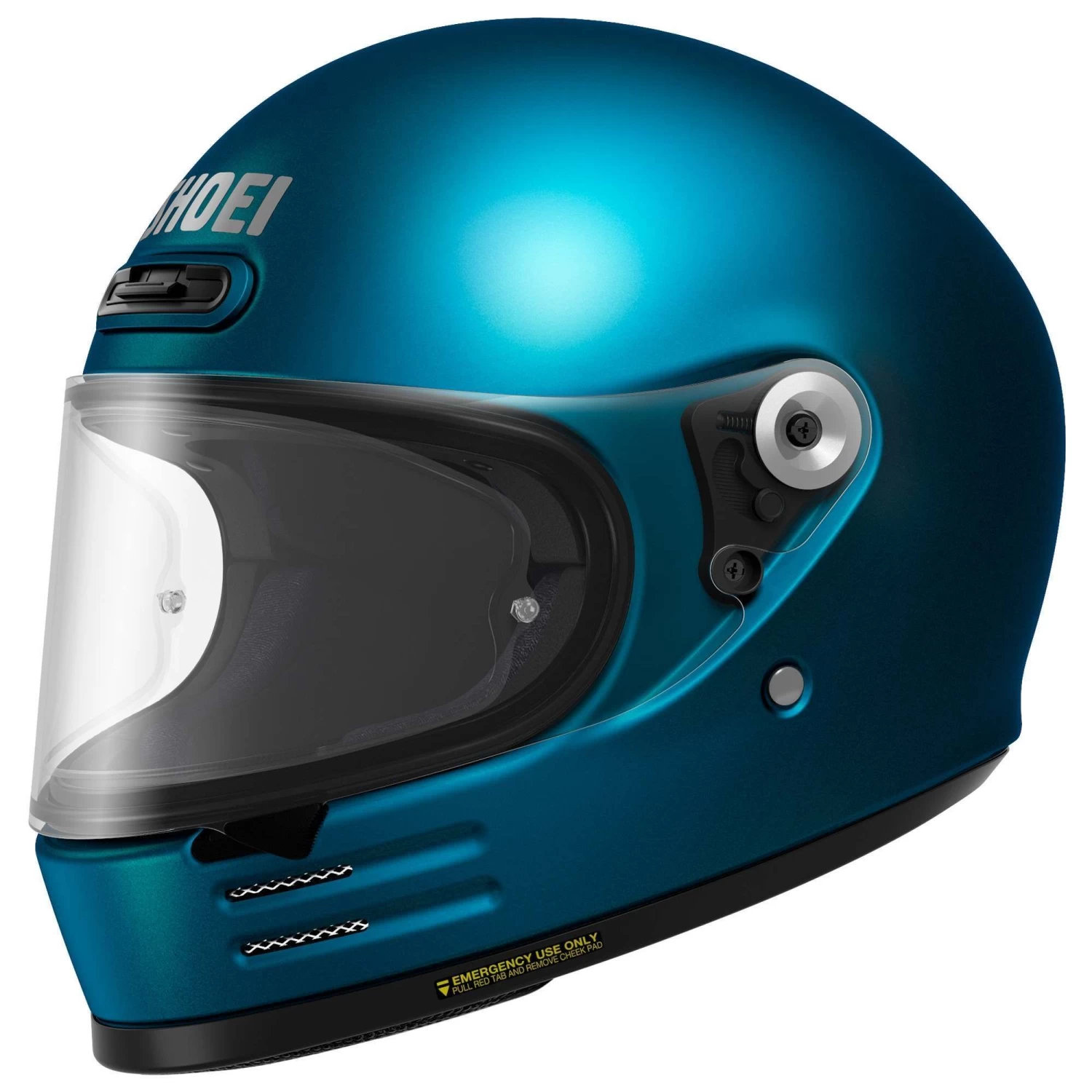 The Glamster uses Shoei’s much lauded Advance Integrated Matrix Plus (AIM) shell design: a composite of 5 layers of fibreglass and organic fibres making for a very strong, slightly flexible helmet. The liner consists of multi-density, shock-absorbing polystyrene, designed to take a punch, big or small. Shoei also incorporated the Emergency Quick Release System in this helmet: paramedics can pull the red tabs at the bottom of the helmet to release the cheek pads and avoid potential neck injuries when removing the helmet in case of an accident.Â