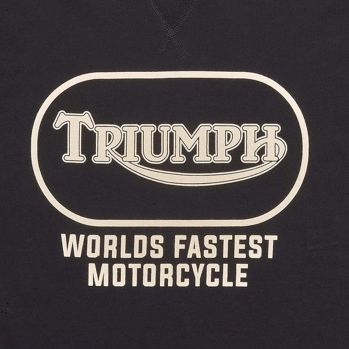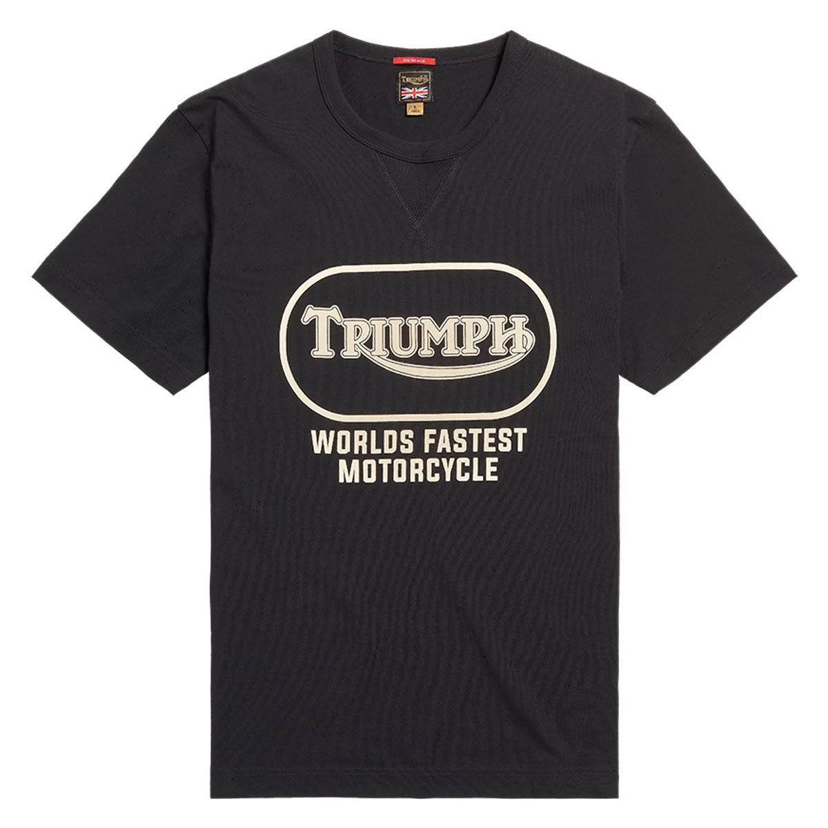Salute Triumph and their historic pursuit of speed with the Oval tee. This is a plain classic fit crew neck made using the finest 160gsm 100% cotton for a premium fit and feel. Up front this style has their world famous heritage graphic logo combined with the ‘Worlds Fastest Motorcycle’ tag line.